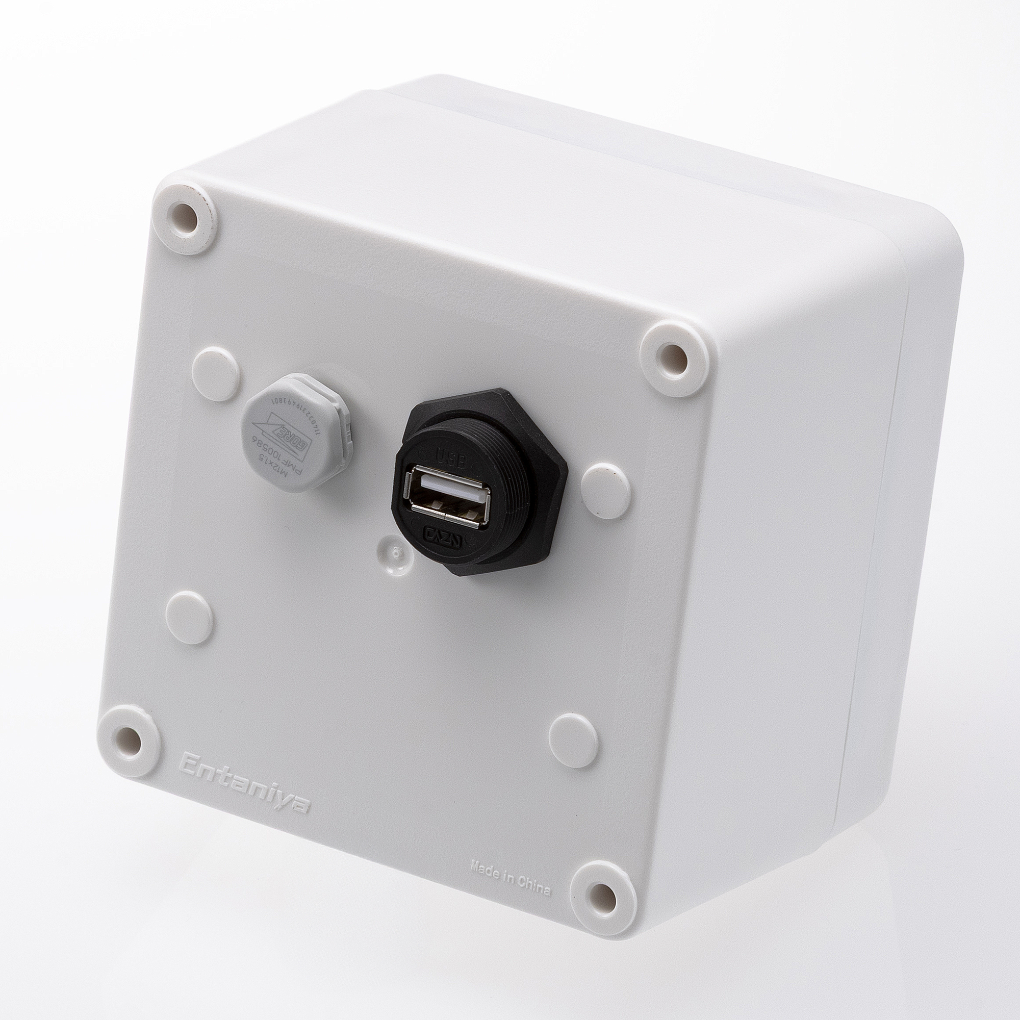 The camera inside the case can be connected using a waterproof USB Type-A connector and an external waterproof USB Type-A cable compatible with the connector can then be attached.